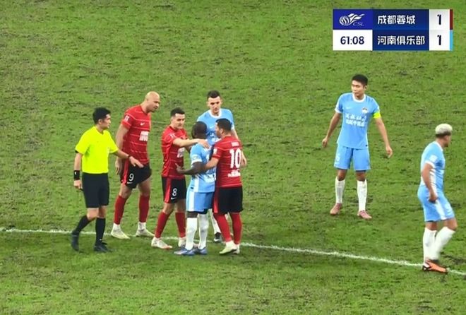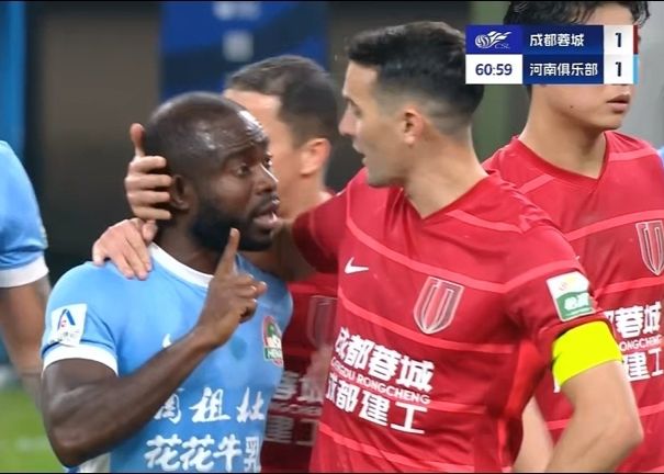 当时比赛进行到第60分钟,场上比分为1-1,看到球队争冠形势危急,蓉城的主场球迷有些心态失衡。他们竟然将不满发泄到对手球员身上,而河南外援队长阿奇姆彭成为了蓉城球迷攻击的目标。