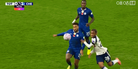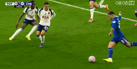 上咪咕独家看英超第69分钟,恩佐踹倒帕利尼亚,被主裁黄牌警告