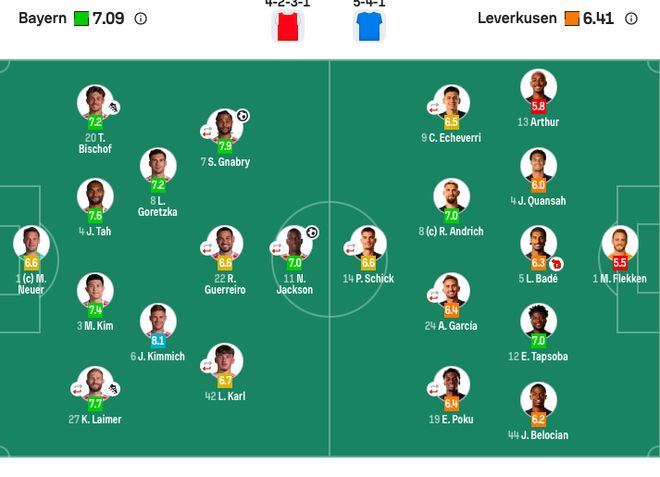 【出场阵容】拜仁首发:1-诺伊尔、4-塔、3-金玟哉、22-格雷罗(79’45-帕夫洛维奇)、20-比朔夫、27-莱默尔(75’23-博伊)、8-格雷茨卡、6-基米希、7-格纳布里(60’17-奥利塞)、42-伦纳特·卡尔(60’14-迪亚斯)、11-杰克逊(60’9-凯恩)。拜仁替补:40-乌尔比希、44-斯坦尼西奇、2-于帕梅卡诺、36-维斯多姆·麦克。勒沃库森首发:1-弗莱肯、4-宽萨、5-巴代、12-塔普索巴、13-阿图尔、44-贝洛西安(85’17-本·塞吉尔)、24-阿莱克斯·加西亚(46’30-马扎)、8-安德里希、19-波库(56’11-泰里耶)、9-埃切维里(35-科法内)、14-希克(56’7-霍夫曼)。勒沃库森替补:28-布拉斯维希、27-门萨、20-格里马尔多、18-萨尔科。相关资讯