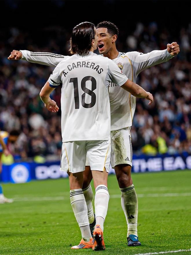41' 科雷亚禁区内放倒卡雷拉斯,裁判判罚点球!42' 维尼修斯主罚点球被扑,居莱尔补射再被扑出。44' 贝林厄姆左路摆脱防守,劲射打进死角,3-0!